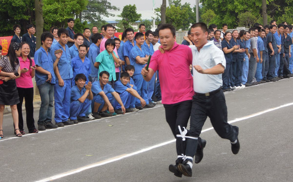 ÉÏͼ£º¶þÈËÈý×ã½ÓÁ¦½ÇÖðÇ¿ÁÒ¾ÙÐÐÖÐ