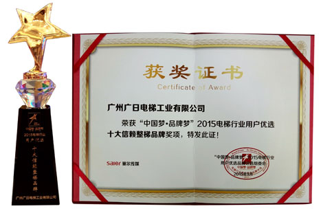 ¡°2015µçÌÝÐÐÒµÓû§ÓÅѡʮ´óÐÅÈÎÕûÌÝÆ·ÅÆ¡±Ö¤Êé¼°½±×ù£º